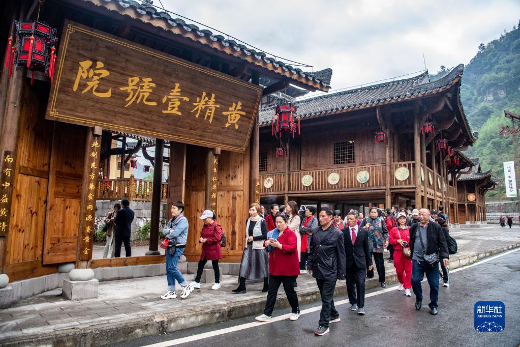 4月13日,在重慶市石柱縣中益鄉,游客在參觀游玩。
