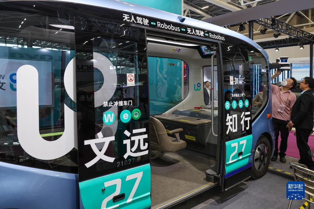 這是廣交會新設置的新能源及智能網聯汽車展區展示的文遠知行無人駕駛小巴(4月15日攝)。