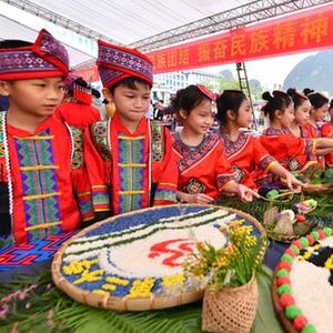 當日,廣西河池市大化瑤族自治縣舉辦“美味三月三”美食大賽,當地各族群眾以糯米、七百弄雞、山羊、河魚等當地特色食材制作的數百道美食參加評比。