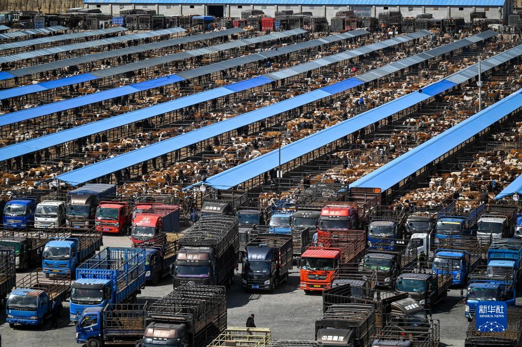 4月12日拍攝的繁忙的成峰牲畜交易市場。