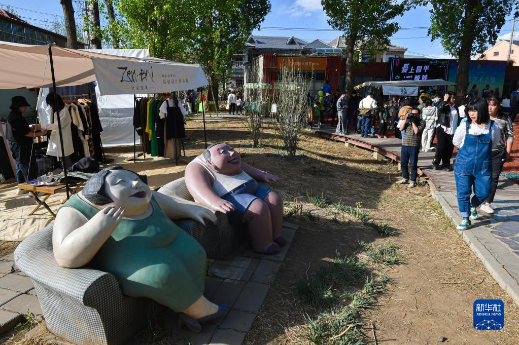 這是4月15日拍攝的“2023下苑藝術生活季”活動現場的一個雕塑作品。