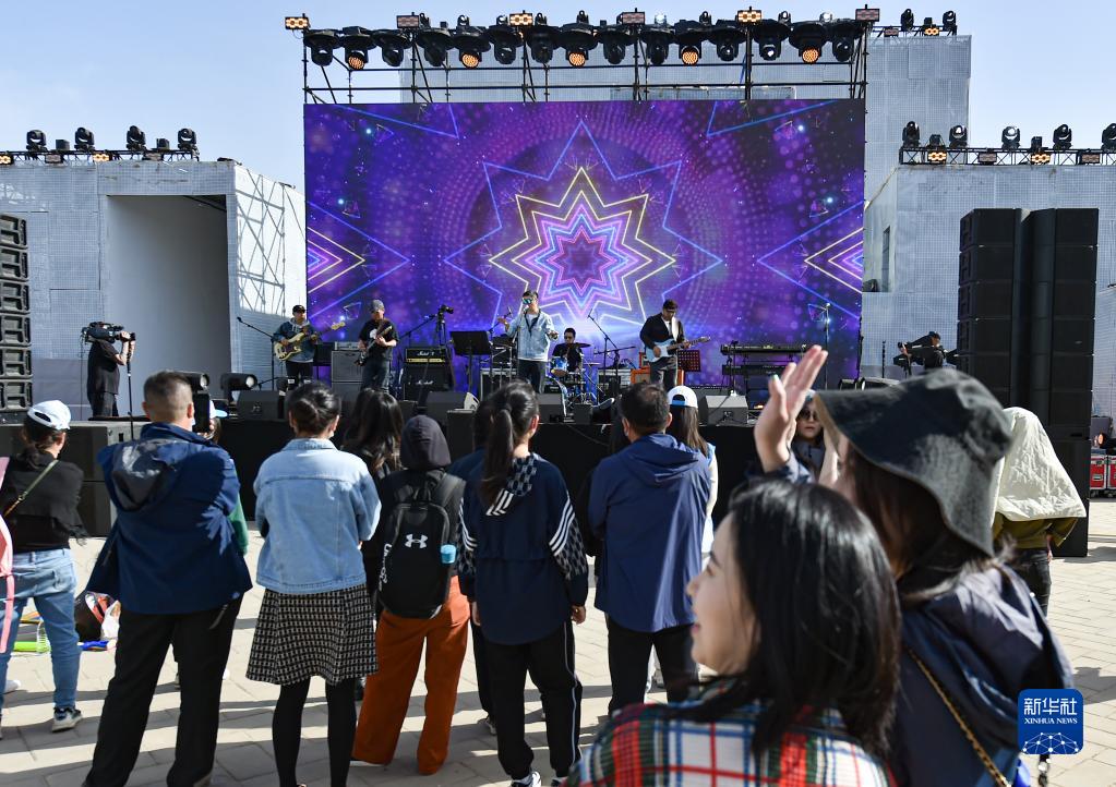 4月15日,游客在“2023下苑藝術生活季”活動現場觀看樂隊演出。