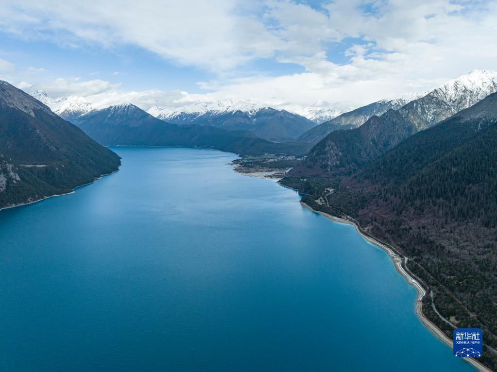 這是4月15日拍攝的巴松措風光(無人機照片)。
