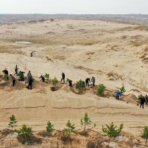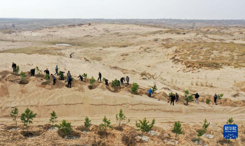 近日,在內蒙古通遼市科爾沁左翼后旗,治沙工人忙著植樹造林,給科爾沁沙地披上“綠裝”??茽柷呱车貦M跨內蒙古、吉林、遼寧三省區,沙地面積7760萬畝,在內蒙古通遼市境內占52.7%。近年來,依托“三北”防護林、退耕還林、公益林保護等重點生態工程,內蒙古通遼市不斷加大植樹造林、草原修復和生態保護力度,科爾沁沙地生態環境得到改善。