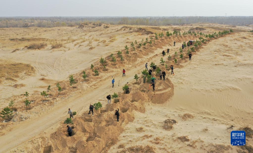 近日,在內蒙古通遼市科爾沁左翼后旗,治沙工人忙著植樹造林,給科爾沁沙地披上“綠裝”??茽柷呱车貦M跨內蒙古、吉林、遼寧三省區,沙地面積7760萬畝,在內蒙古通遼市境內占52.7%。近年來,依托“三北”防護林、退耕還林、公益林保護等重點生態工程,內蒙古通遼市不斷加大植樹造林、草原修復和生態保護力度,科爾沁沙地生態環境得到改善。