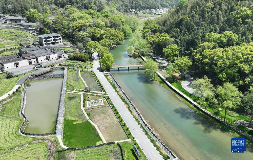 這是4月7日拍攝的江西省靖安縣璪都鎮港背村(無人機照片)。