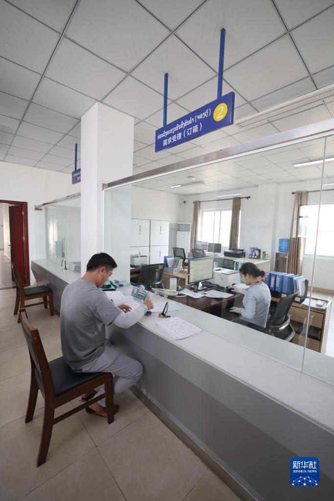 4月15日,就職于老撾玉溪鐵大礦業有限公司的老撾華人吳阿強(左)在老撾萬象南站辦理鐵礦石裝運手續。