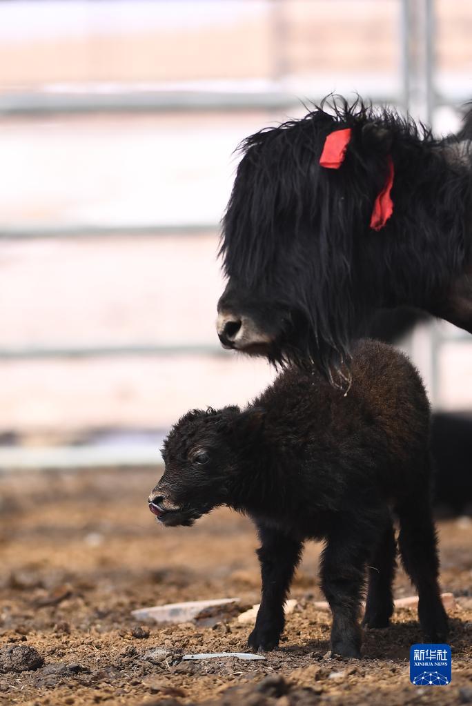 這是4月14日拍攝的剛察縣環湖型牦牛良種繁育基地內的環湖型長毛牦牛。