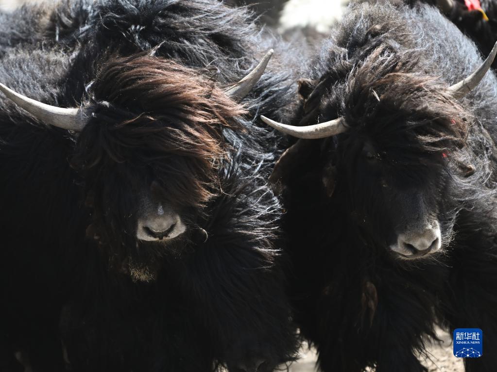 這是4月14日拍攝的剛察縣環湖型牦牛良種繁育基地內的環湖型長毛牦牛。 新華社記者 張龍 攝