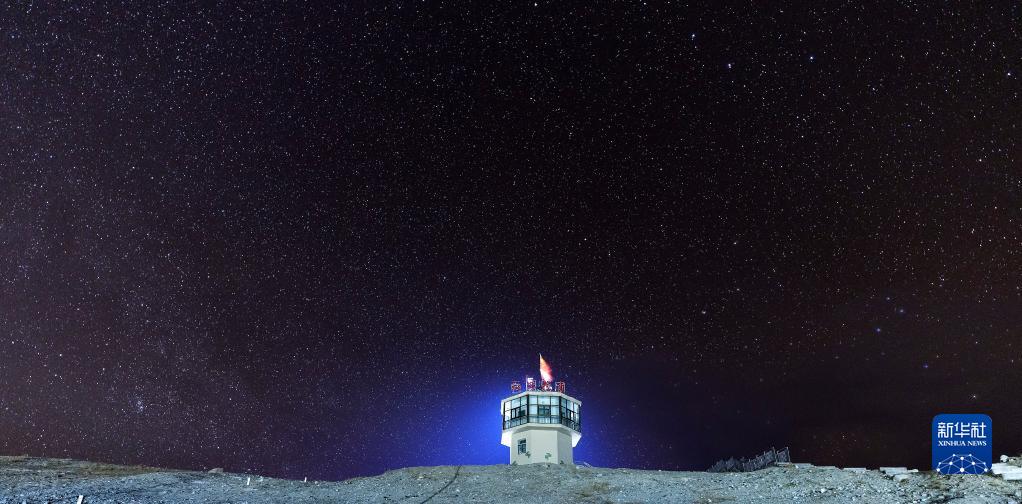這是4月12日深夜拍攝的紅其拉甫哨所。哨所與滿天繁星相互輝映。