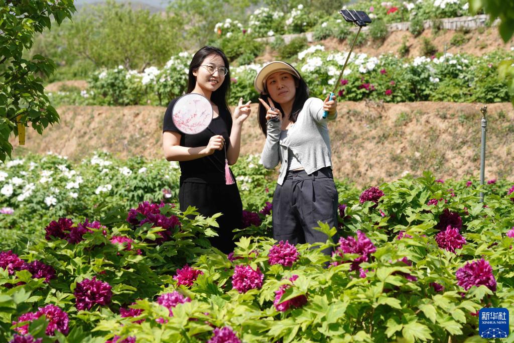 4月16日,游客在白臺峪村牡丹農業產業園拍照游玩。