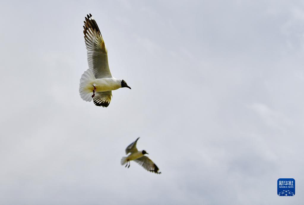 棕頭鷗盤旋在拉薩河上(4月16日攝)。