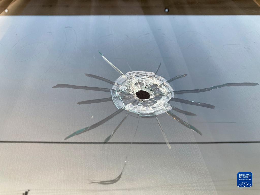 這是4月16日在美國亞拉巴馬州戴德維爾槍擊事件現場拍攝的彈孔。