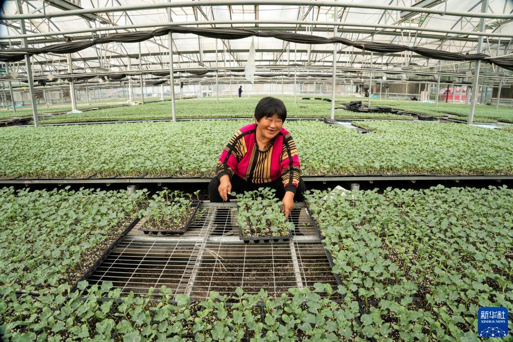 4月17日,在河北省永清縣龍虎莊鄉興晟現代農業園區的育苗大棚內,工作人員在育西瓜苗。