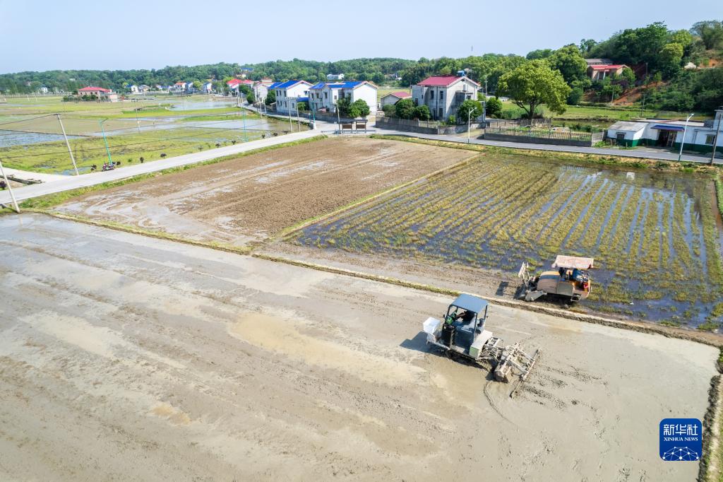 時下正值春耕生產時節,在湖南省長沙市望城區烏山街道黃花嶺村,當地村民趁著晴好天氣開展春耕工作,為全年水稻豐產豐收打下基礎。