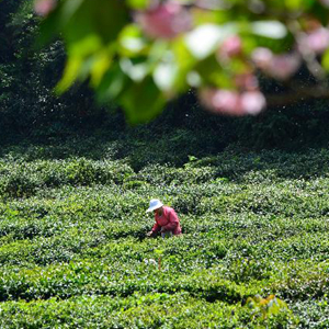 4月17日,村民在貴州省黔東南苗族侗族自治州從江縣剛邊壯族鄉良田村中藥材種植基地采收板藍根苗(無人機照片)。