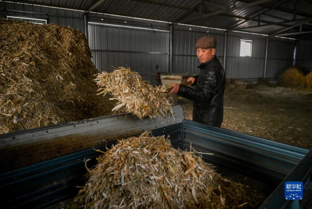 4月14日,在通遼市科爾沁左翼后旗甘旗卡鎮,養牛大戶布和白乙準備喂牛。