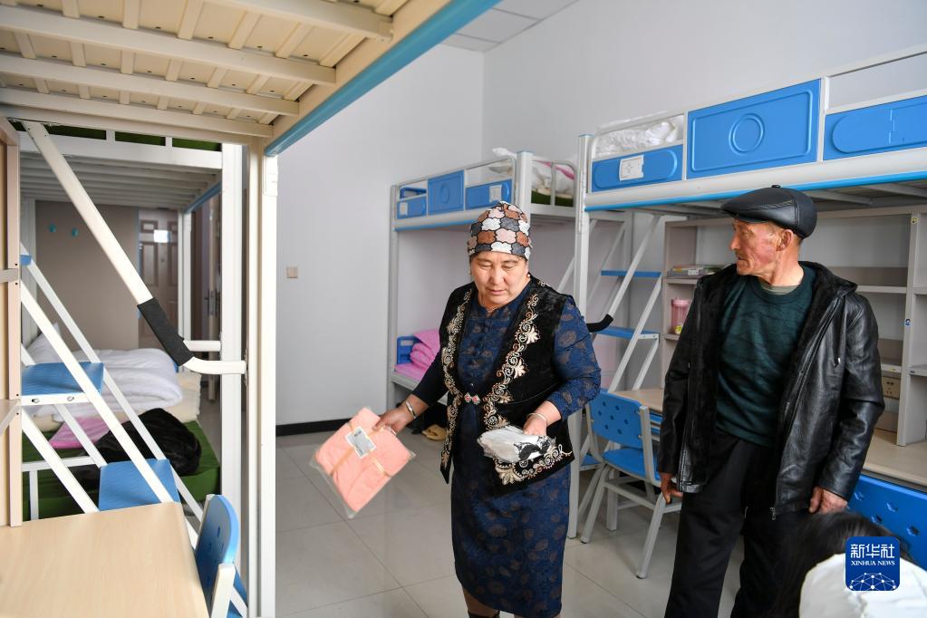 在新疆醫科大學(雪蓮山校區)學生宿舍內,巴哈提和丈夫哈布得拉什么為女兒收拾生活用品(2月18日攝)。