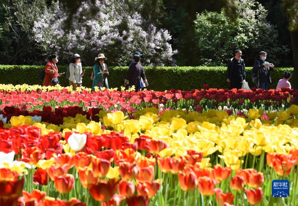 目前,北京中山公園的郁金香花開正艷。據了解,今年,北京中山公園布置了六個主題景區,展出85個品種近20萬株郁金香及洋水仙、葡萄風信子等球根花卉。