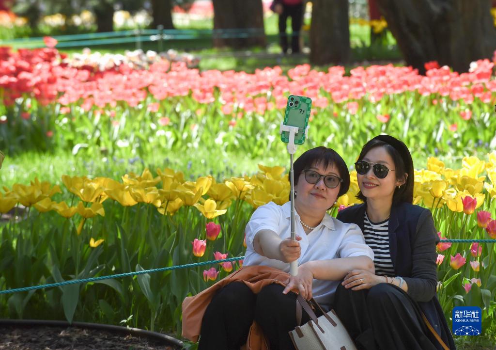 目前,北京中山公園的郁金香花開正艷。據了解,今年,北京中山公園布置了六個主題景區,展出85個品種近20萬株郁金香及洋水仙、葡萄風信子等球根花卉。