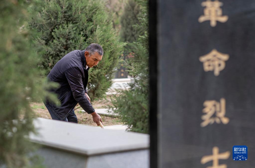 4月16日,艾尼瓦爾·艾買爾在葉城烈士陵園鋤草。