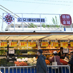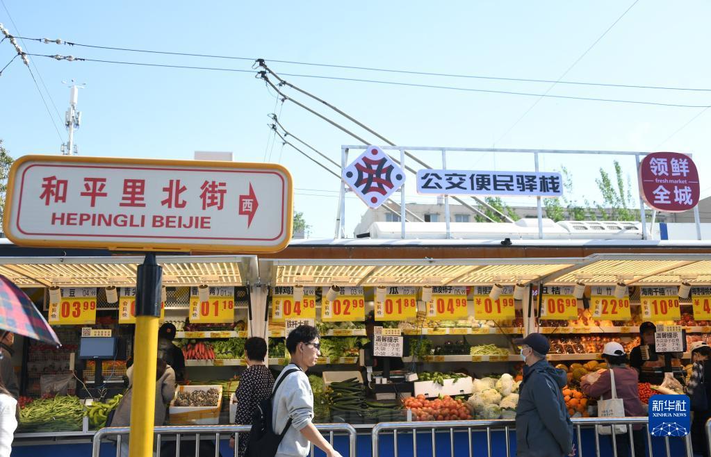 近期,位于北京市朝陽區柳芳公交場站東北角的“公交便民驛?!蓖度脒\營,市民可在“公交便民驛?!辟徺I蔬菜、水果等農產品。