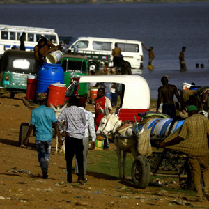 4月17日,由于武裝沖突導致停水,蘇丹喀土穆市民到尼羅河打水。