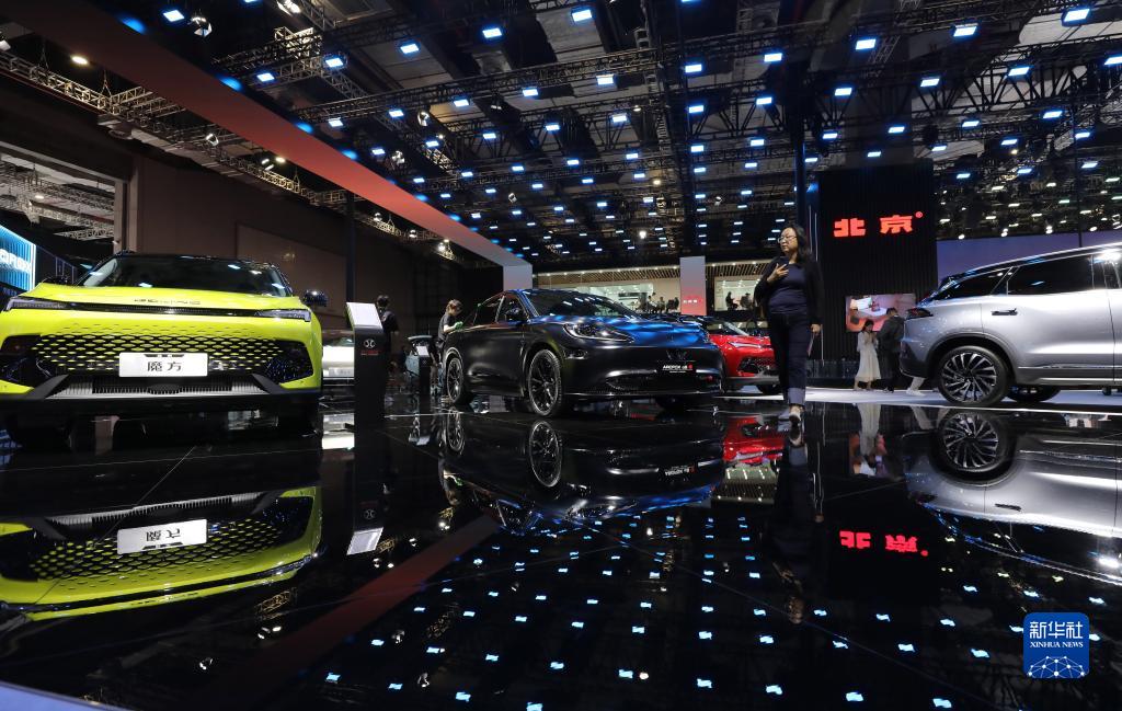 4月18日,參觀者在北京汽車品牌展臺參觀。
