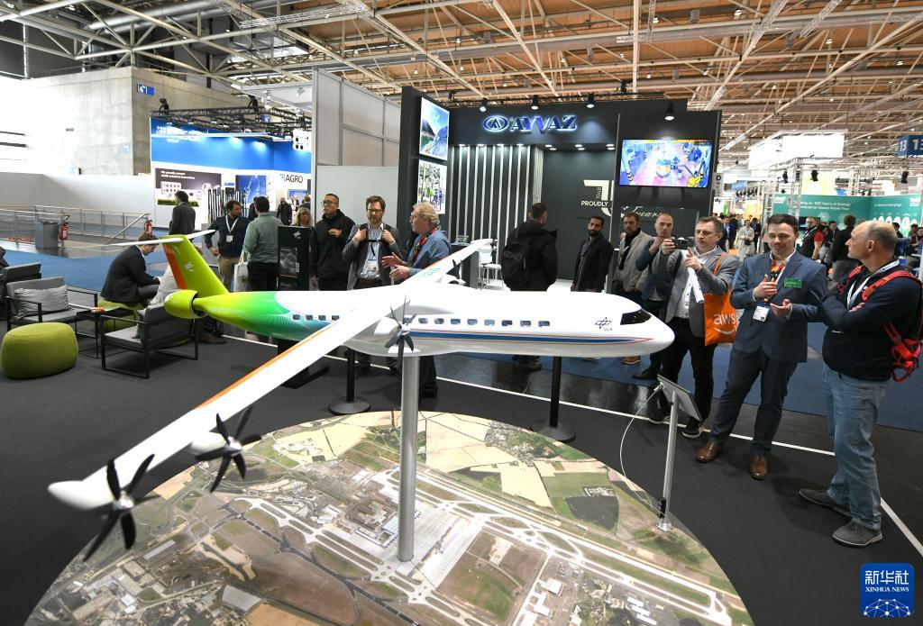 4月17日,人們在德國漢諾威工業博覽會上參觀一款氫能飛機模型。