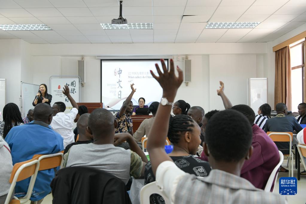 肯尼亞內羅畢大學孔子學院18日舉辦“中文,增進文明對話”主題活動,慶祝即將到來的第14個聯合國中文日??夏醽唽W生參與互動,進行書法、剪紙、唱中文歌等活動。