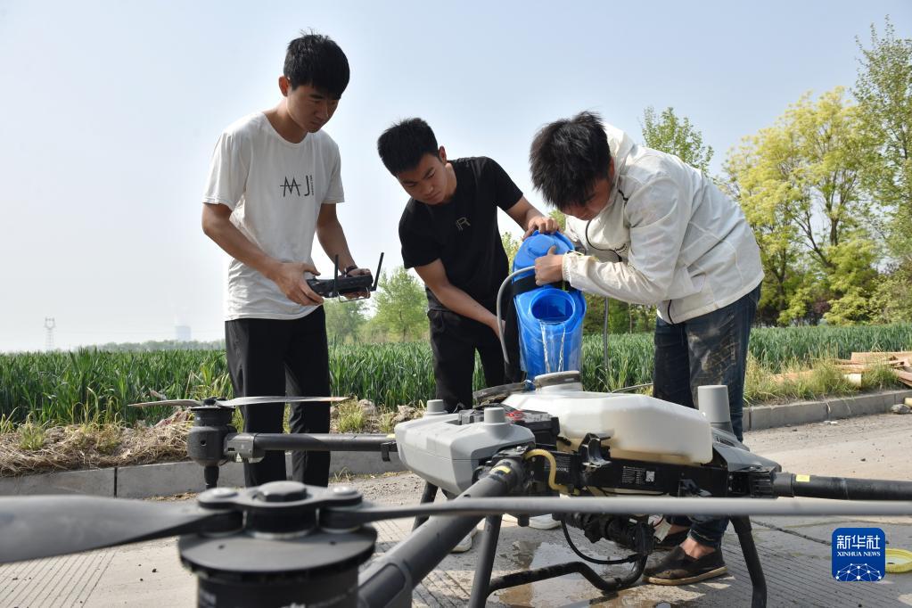 4月19日,河北省邢臺市南和區河郭鎮張相村農民為植保無人機添加農藥。