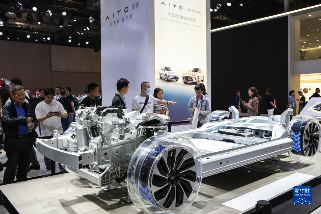 4月18日,參觀者在觀看問界M5系列智能增程四驅平臺。