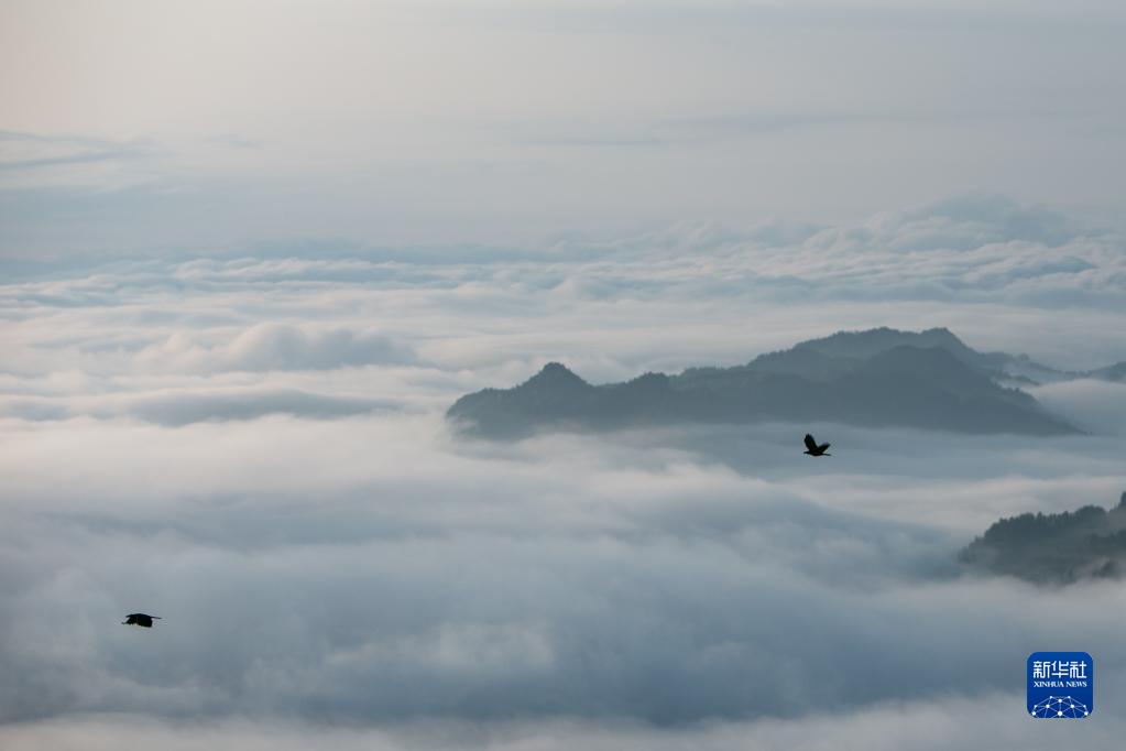 當日,位于重慶市南川區的世界自然遺產地金佛山雨后放晴,山間升騰起的水汽匯聚成云海在山巒之間流淌,美不勝收。