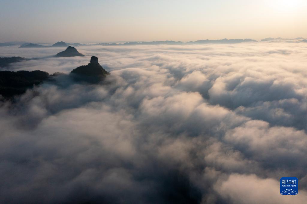 當日,位于重慶市南川區的世界自然遺產地金佛山雨后放晴,山間升騰起的水汽匯聚成云海在山巒之間流淌,美不勝收。