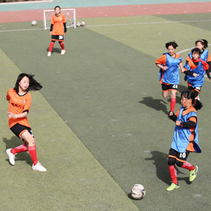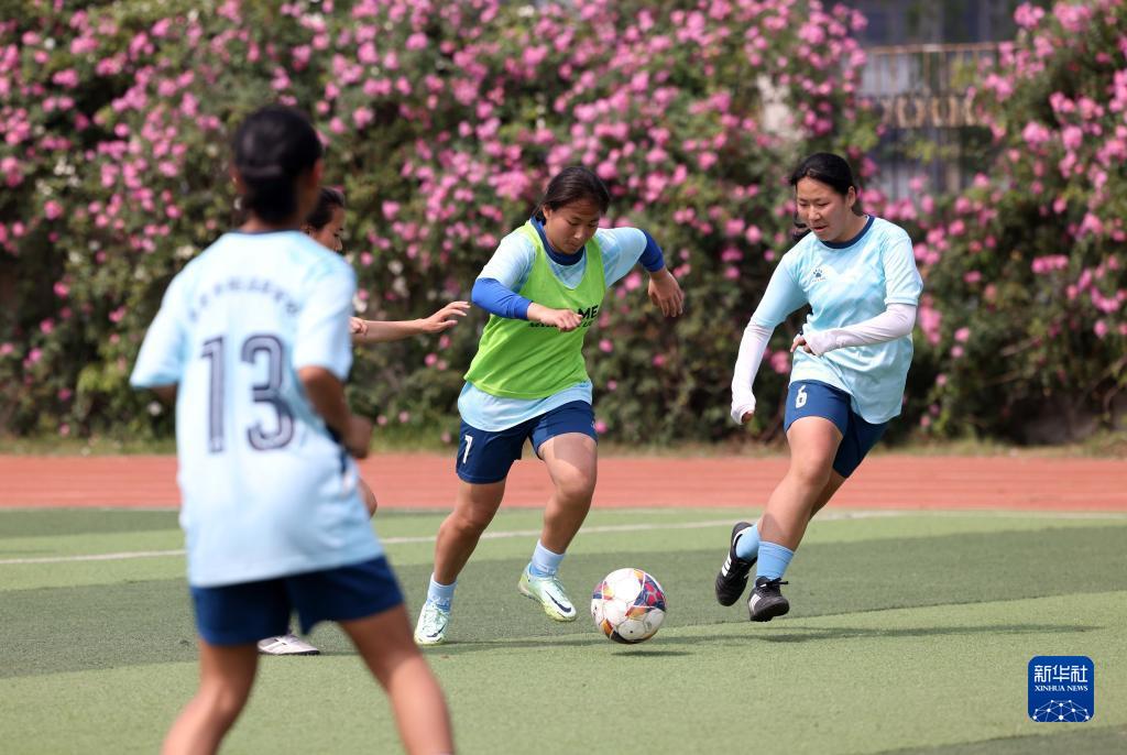 4月19日,在安徽省合肥市裕溪路學校,女足隊員進行足球訓練。