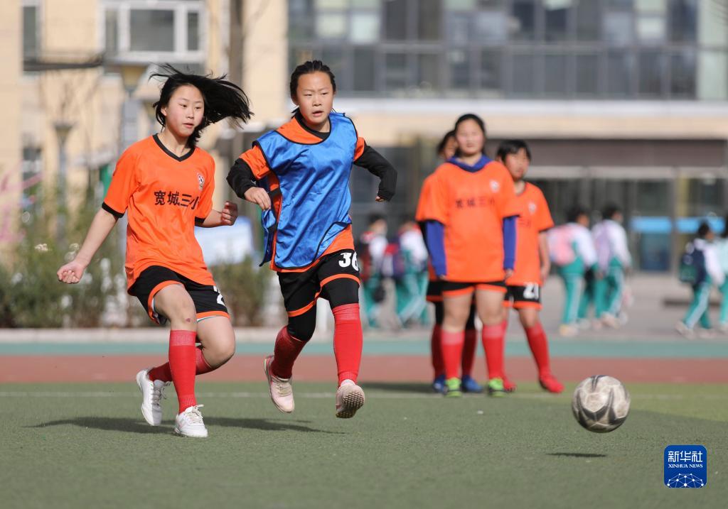 春日里,在河北省承德市寬城滿族自治縣第三小學,女足隊員在春光里訓練,感受足球運動的樂趣。近年來,寬城縣積極推進“足球進校園”活動,通過在中小學開設足球課程,成立足球社團、舉辦足球比賽等形式,讓更多的孩子接觸足球,增強身體素質。
