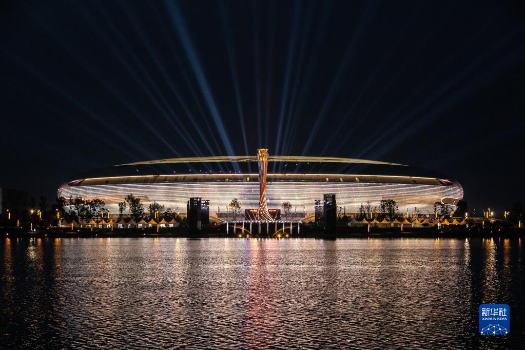 這是4月19日拍攝的第31屆世界大學生夏季運動會開幕式主體育場及主火炬。