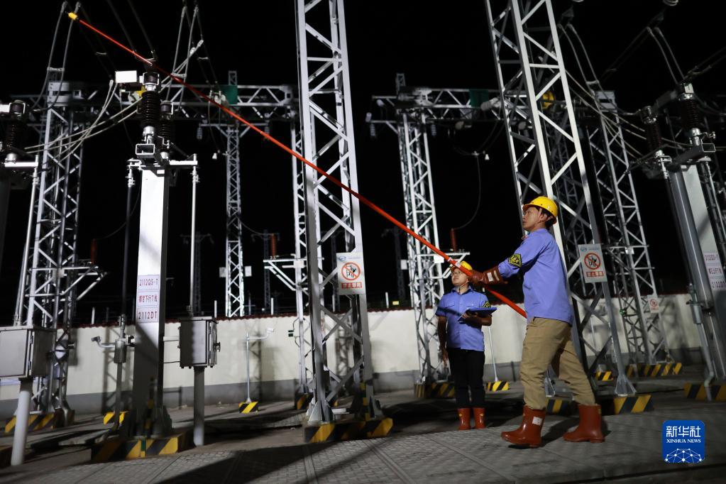 4月19日,貴陽供電段工作人員在都勻東站變電所進行驗電操作。