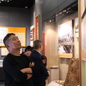 4月19日,游客在甘肅省會寧縣紅軍長征勝利紀念館參觀。