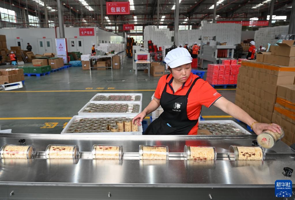 4月19日,在全國農村創業園區(基地)——辰頤嚴選產業園的電商農產品深精加工車間,員工在檢查農產品包裝。