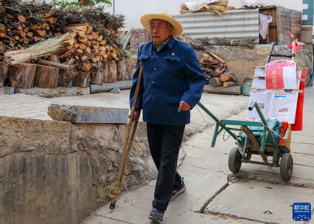 4月19日,李存德拉著車前往農家書屋裝書,準備出攤。新華社記者 崔文 攝