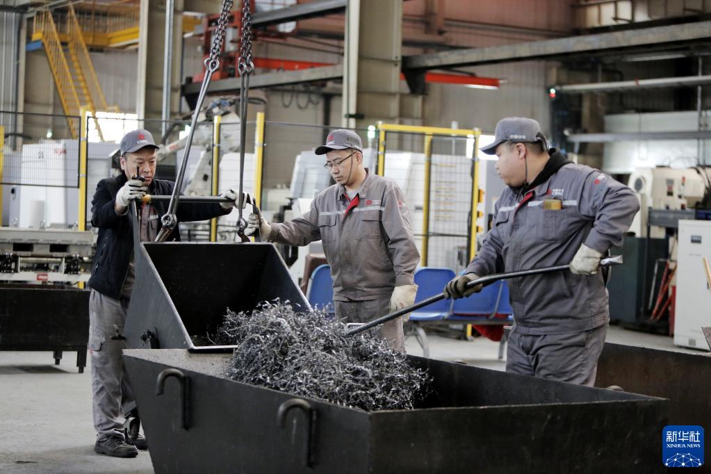 4月19日,在中車齊車公司的生產車間,工人在進行生產作業。