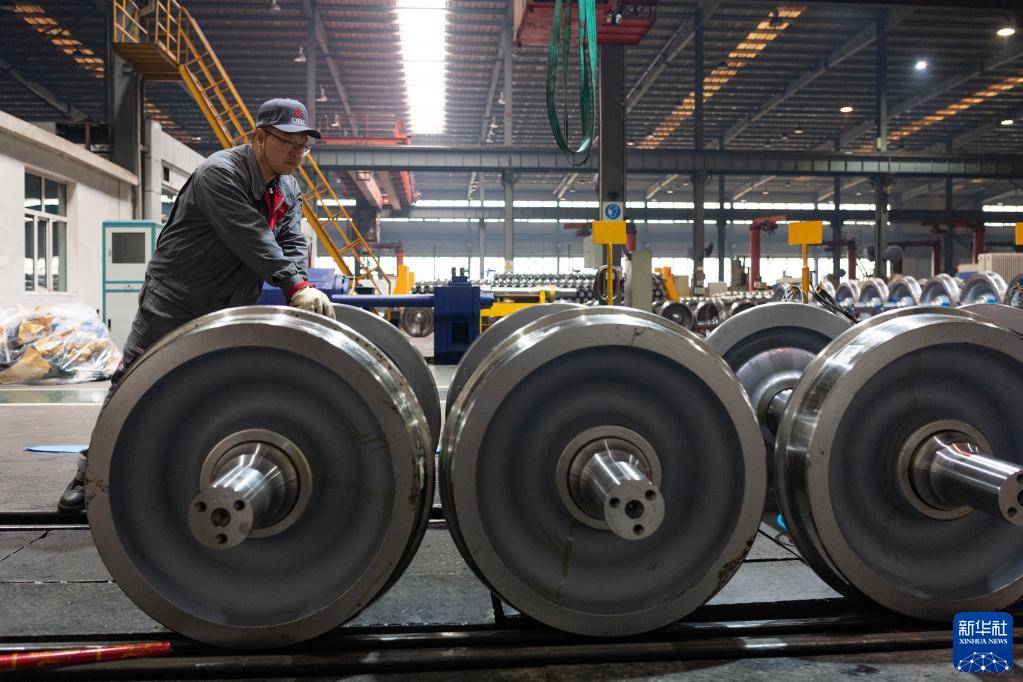 4月19日,在中車齊車公司的生產車間,工人在進行生產作業。