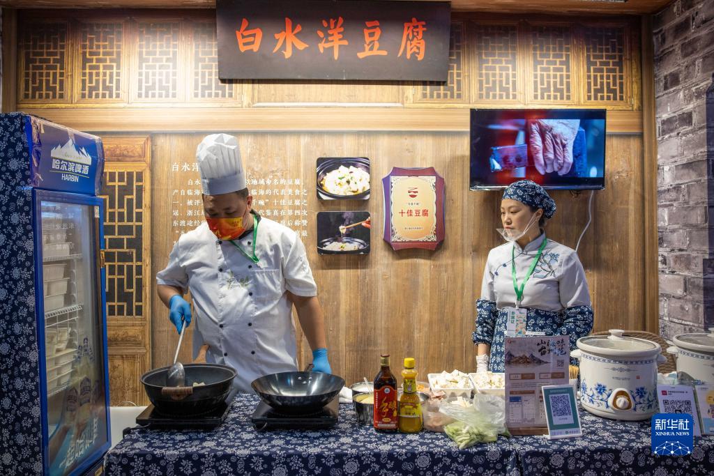 4月20日,廚師在“味美浙江”餐飲消費歡樂季現場制作特色小吃。