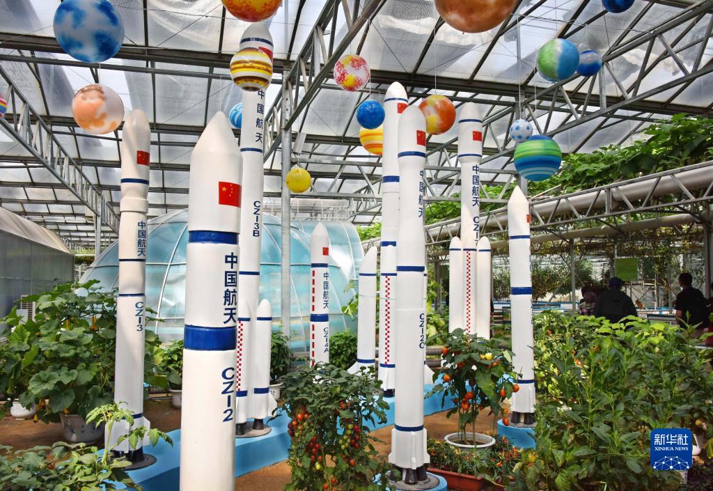 4月20日,參觀者在菜博會太空主題展區參觀。