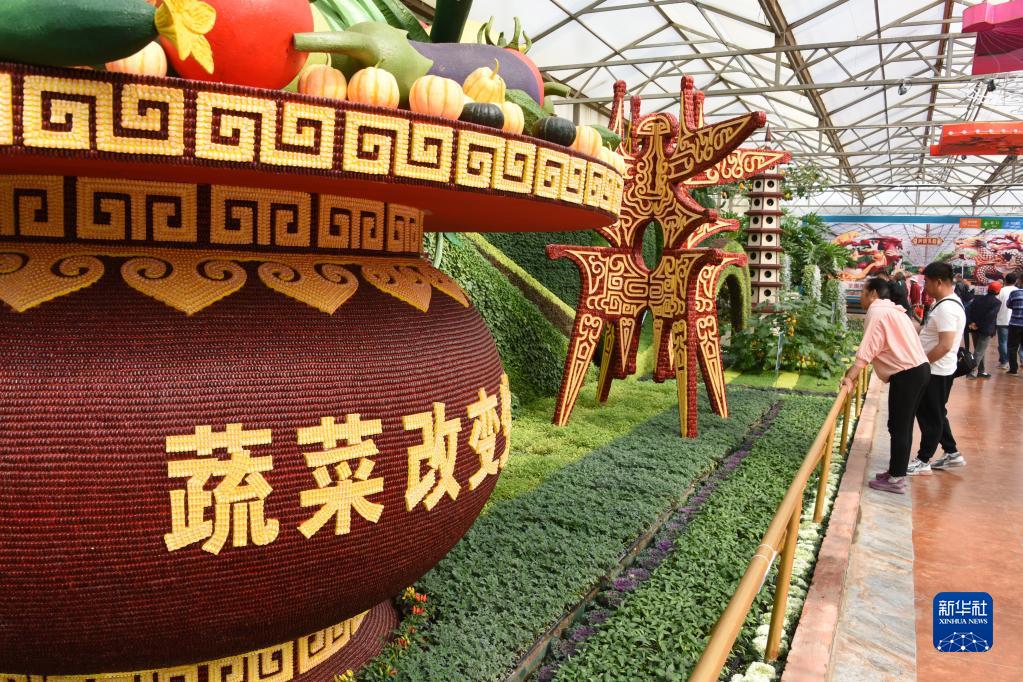 4月20日,參觀者在菜博會蔬菜文化景觀展區參觀。