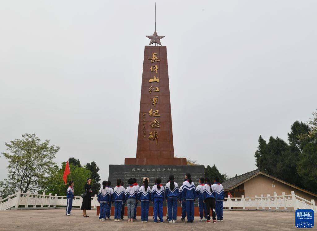 4月18日,馮煉組織學生來到長坪山紅軍紀念碑,向學生講述紅軍故事。