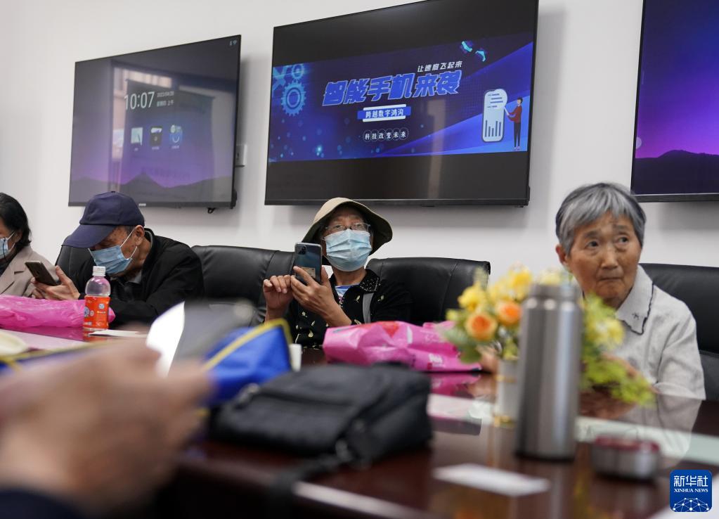 4月20日,杭州市西湖區西溪街道求智未來社區老年居民在參加智能手機培訓。