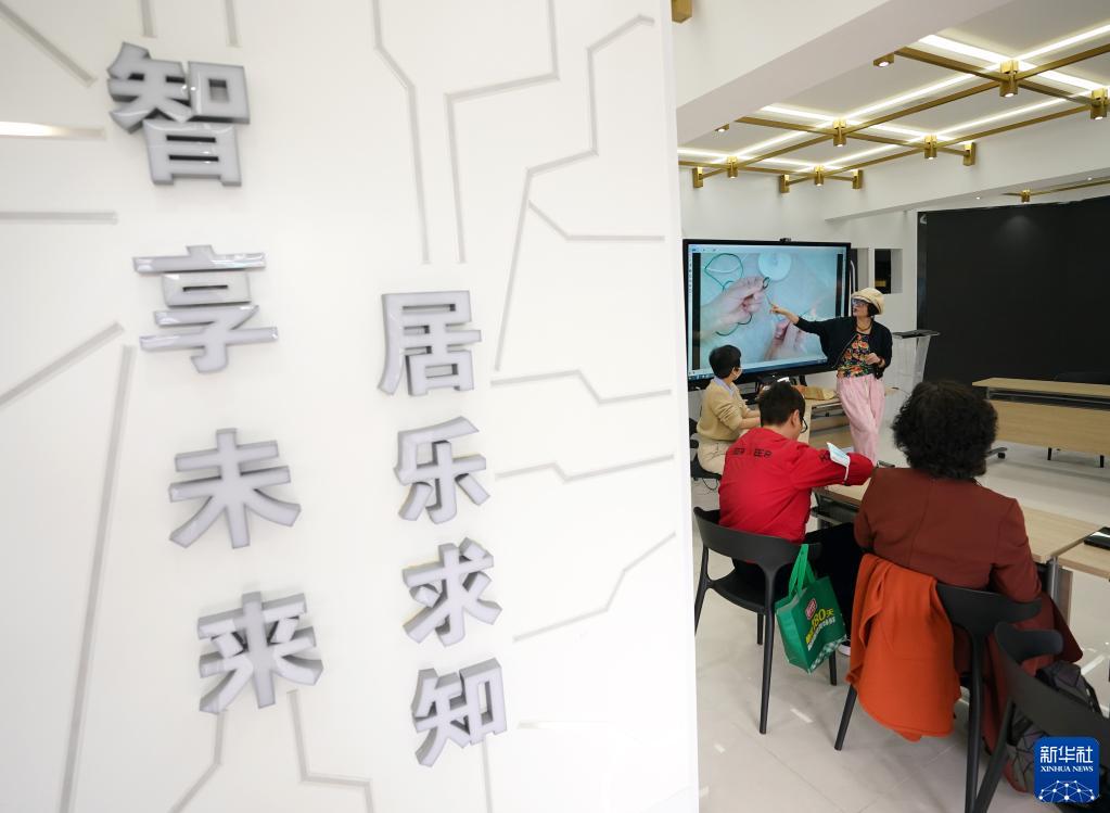 4月20日,杭州市西湖區西溪街道求智未來社區居民在未來社區會客廳內學習編織。