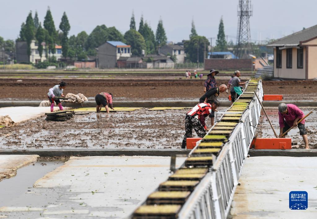 位于成都平原的四川省眉山市彭山區,近年來加快建設數智水稻示范基地,通過引進或定制循環式智能育秧機、智能水稻育秧播種流水線、秧盤智能傳輸帶等設備,提升春耕科技含量,提高生產效率。